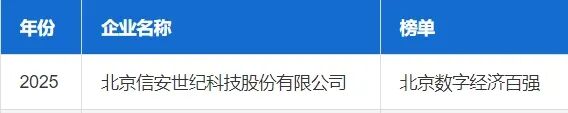 信安世紀連續(xù)2年入選北京數(shù)字經(jīng)濟企業(yè)百強