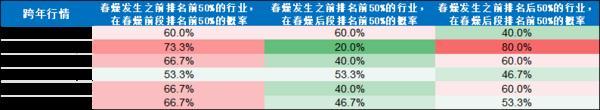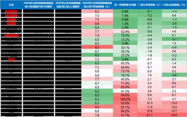 如果是春季躁動(dòng)發(fā)生之前,排名表現(xiàn)一般的行業(yè),在春季躁動(dòng)的后段占優(yōu)的概率大概是50%-60%。此外從另一個(gè)角度而言,如果以當(dāng)年的前期主線行業(yè)為樣本來(lái)看,前期為主線的行業(yè)(1-10月漲幅排名前10)且春季躁動(dòng)發(fā)生前的一段時(shí)間表現(xiàn)較差(期間排名后10),那么這些行業(yè)在春季躁動(dòng)的后段占優(yōu)概率大致達(dá)60%-70%的水平(剔除僅單個(gè)樣本的年份)。